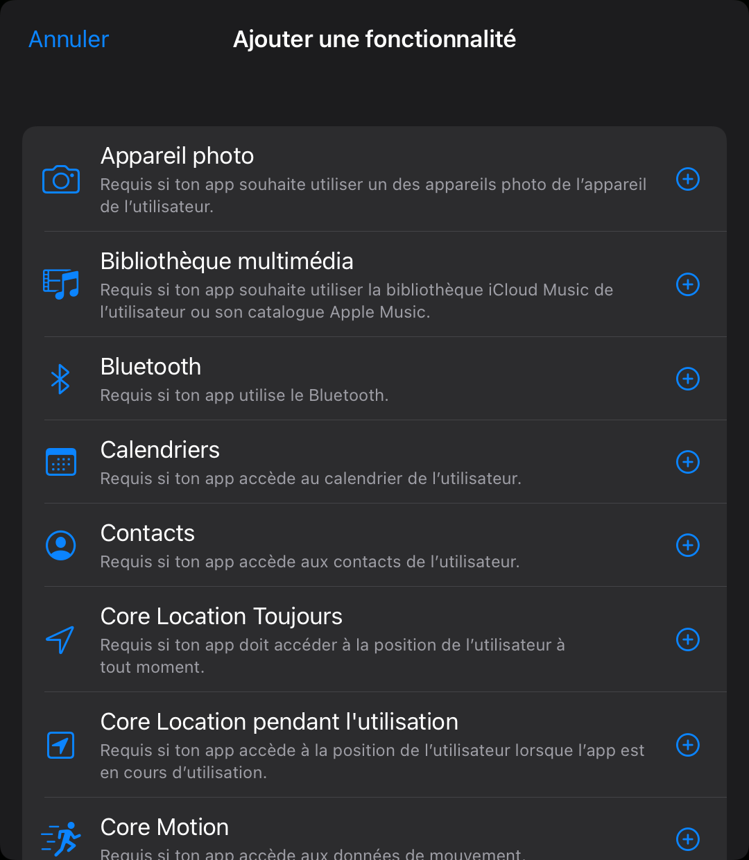Certaines fonctionnalités avancées peuvent également être utilisées dans Swift playgrounds (reconnaissance biométrique, accès à la photothèque, …)
